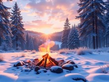 4K Winter Campfire
